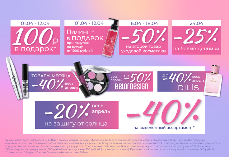 Мы стали проводниками для белорусской косметики в Воронеже и по всему Черноземью. В нашем каталоге представлено множество брендов, самыми известными из которых являются Белита и Витекс, а также собственная разработка - «Мiлолiка».